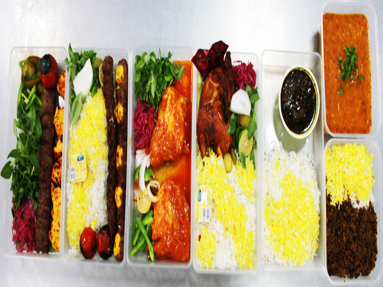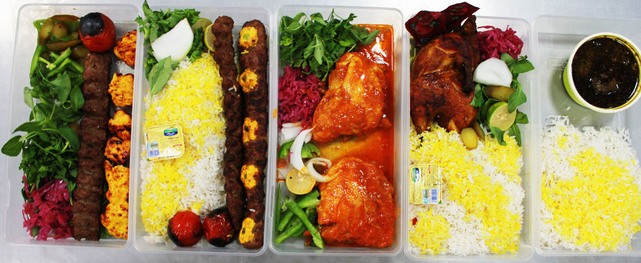 برای بهترین ارائه سرویس بیرون بر ابتدا غذاها با دیزاین خاصی در سینی ها مخصوص سرو شده و