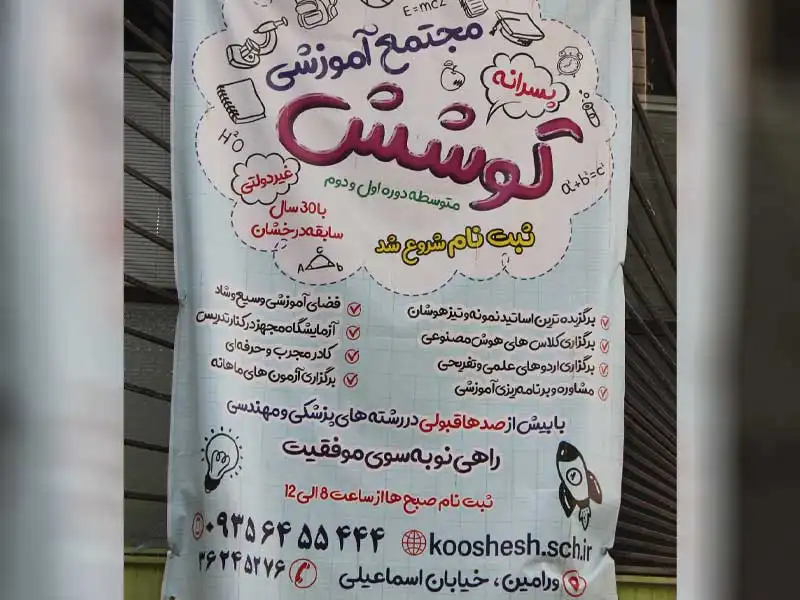 دبیرستان غیر دولتی کوشش (دوره اول و دوم) یکی از مدارس موفق و معتبر در سطح منطقه است که با هدف ارتقای کیفیت آموزشی و تربیتی، محیطی پویا و انگیزهبخش برای دانشآموزان فراهم کرده است. این دبیرستان با بهرهگیری از کادری مجرب و دلسوز، تلاش میکند تا آموزش را از یک فرایند صرفاً درسی فراتر برده و به بستری برای رشد همهجانبه تبدیل نماید.