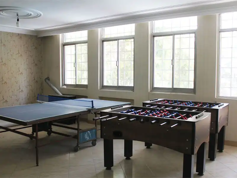 فوتبال دستی و پینگ پنگ در خود مدرسه و سالن ورزشی مجزا به همراه سرویس حمل و نقل