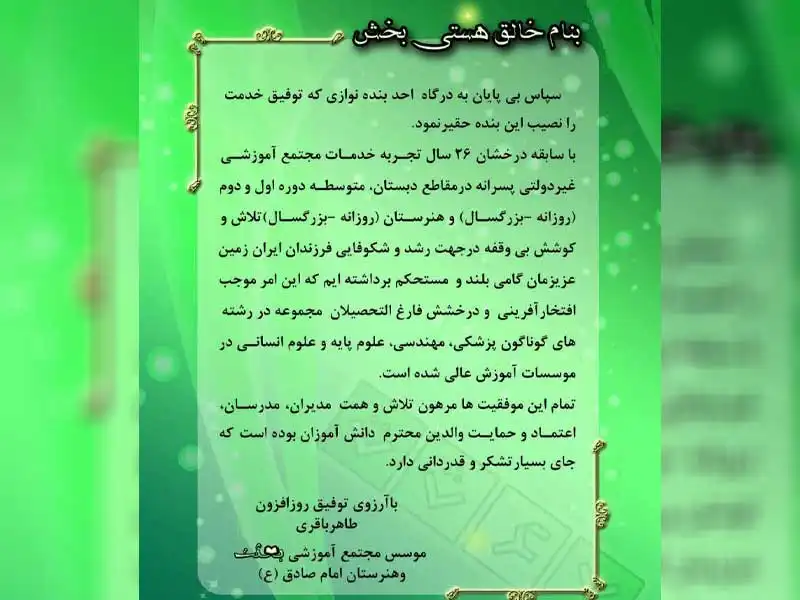 درباره ی مجتمع آموزشی پسرانه بعثت و هنرستان امام صادق