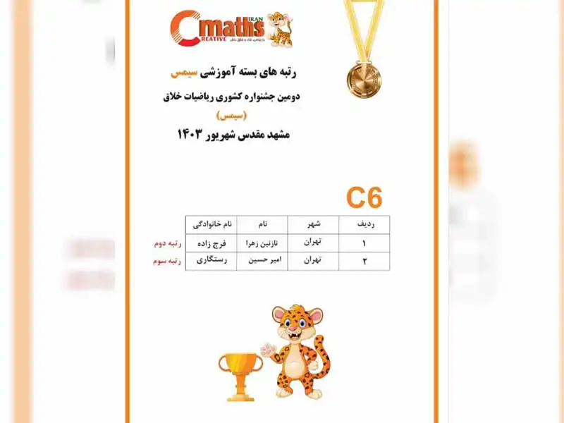 ** دارای رتبههای اول مسابقات کشوری cmaths **