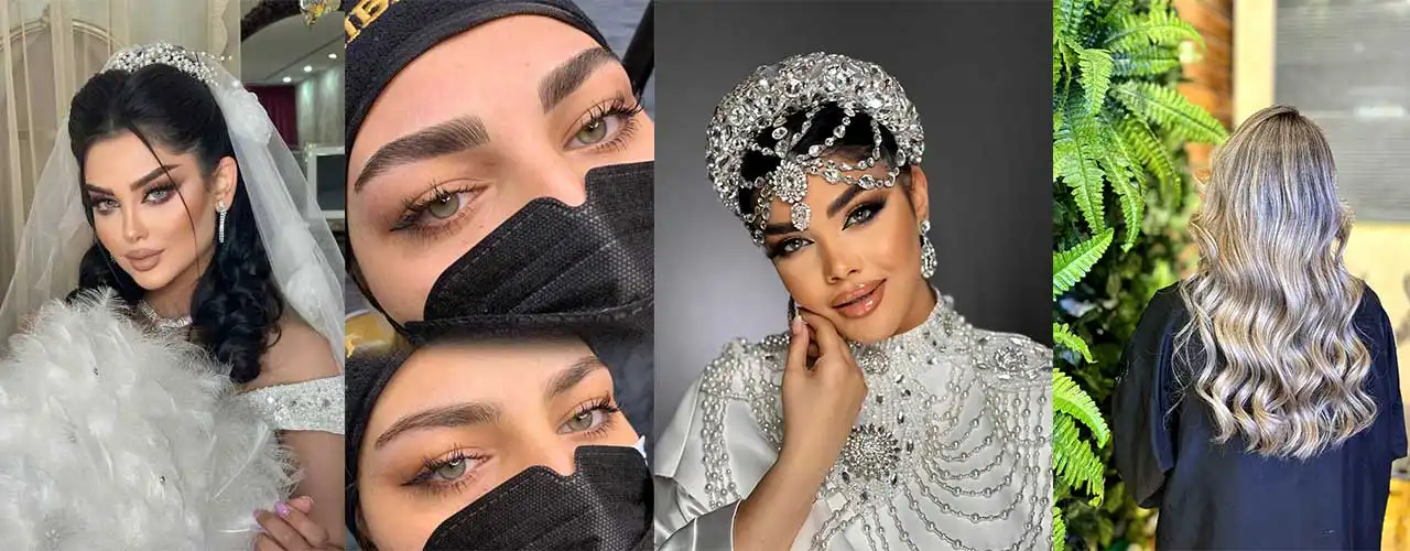 خدمات کامل میکاپ و گریم عروس، آرایش مناسبتی، شنیونهای کلاسیک و مدرن نیز با تکنیکهای روز اجرا میشود تا در مهمترین لحظات زندگیتان بدرخشید.
