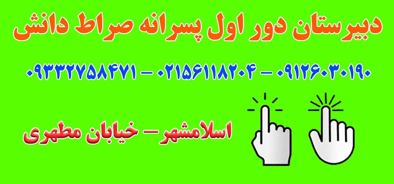 آدرس: تهران – اسلامشهر – خیابان مطهری (حاج محمود) – کوچه 10 – دبیرستان غیردولتی صراط دانش (پسرانه دوره متوسطه اول)