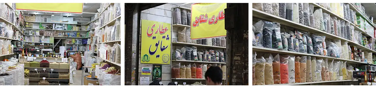آدرس: تهران – بازار – چهارراه سیروس – بازار چهل تن – پلاک 9 – عطاری شقایق