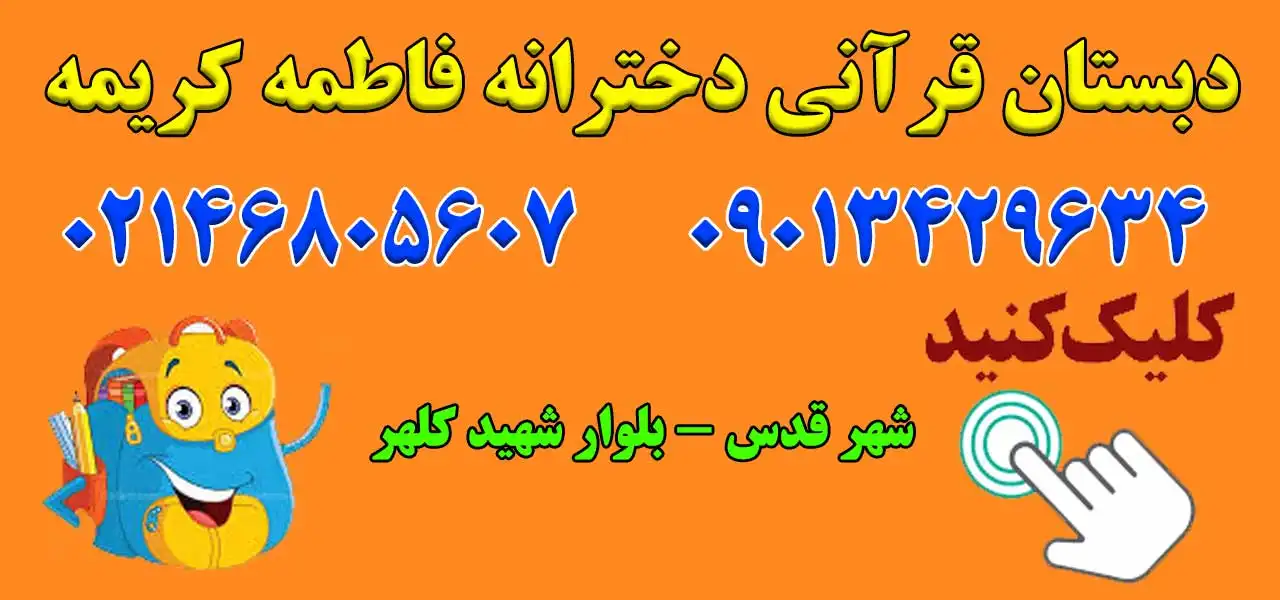 آدرس: شهر قدس – بلوار شهید کلهر – روبروی سی متری شورا – کوچه کار آفرین وسط کوچه – مدرسه فاطمه کریمه